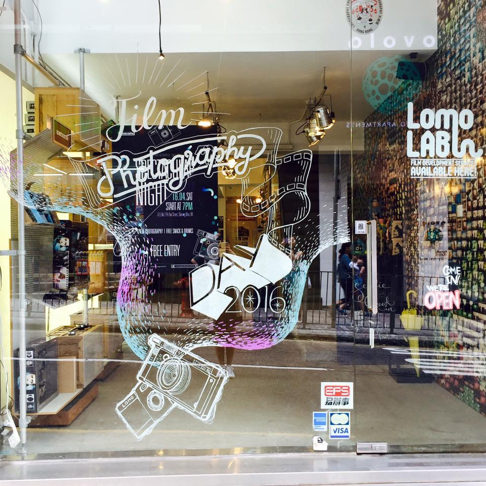 As a part-time sales these two years, I have also been in charge of visual merchandise design in Lomography Hong Kong. Here are some selected works of hand drawing window display.